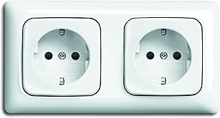 Komplett-Set Busch-Jaeger Reflex Si Abdeckrahmen Linear, 2-fach - Alpinweiß, glänzend mit 2x Steckdose -BUSCH-JAEGER- -weiß- -Reflex SI-