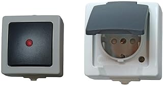 Kopp Nautic Kontrollschalter (Aus- und Wechselschalter) beleuchtet, Aufputz, Lichtschalter für Feuchtraum, 250V (10A), IP44, grau & Nautic Steckdose und Schalter Kombination für Feuchtraum, grau