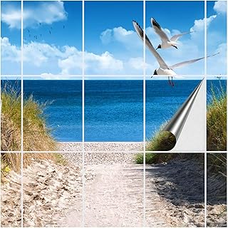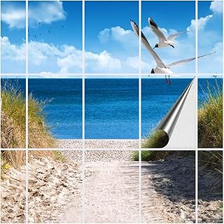FoLIESEN Fliesenaufkleber für Bad und Küche | Fliesenposter Meerblick | Fliesengröße 15x20 cm (BxH) | Fliesenbild 18 TLG. - 90x60 cm (BxH)