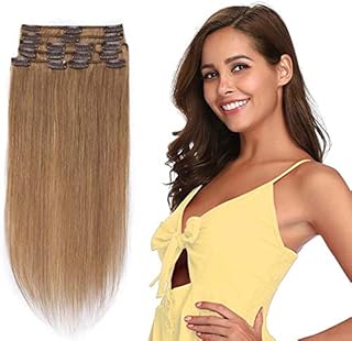 Clip In Extensions Haarverlängerung für komplette Remy Echthaar Glatt 100g - 45cm #27 Dunkelblond