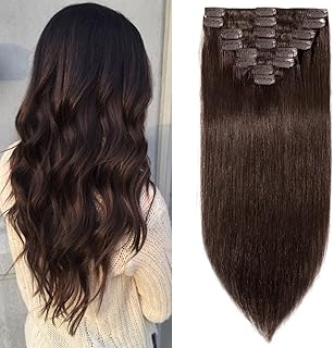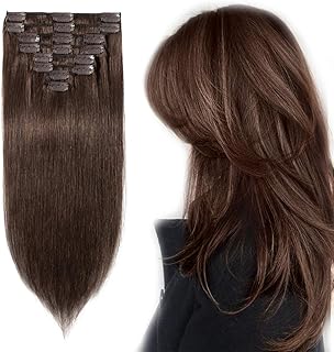Clip in Extensions Echthaar günstig Haarverlängerung Standard Weft 7A Remy Echthaar 8 Teile 18 Clips Glatt 45cm-100g (#4 Schokobraun)