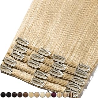 Clip In Extensions Echthaar Remy Haarverlängerung 100% Echthaar für komplette Glatt 45cm-100g (#613 Hellblond)