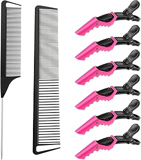 2 Stücke Kohlenstoff Ballaststoff Kämme und 6 Stücke Schneiden Krokodil Haar Clip, Ratte Schwanz Kamm Schneiden Kamm mit Breit und Feine Zähne Salon Friseur Haar Pflege Werkzeuge