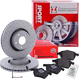 Zimmermann Sport Bremsscheiben Coat Z gelocht/Bremsen + Bremsbeläge + Warnkabel für vorne/für die Vorderachse