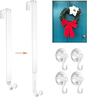 VIS'V Kranzaufhänger, 38,1 - 61 cm, verstellbarer Metall-Kranzaufhänger für die Haustür 9 kg, robuster Kranzhalter mit 4 Saugnäpfen für Kranz, Weihnachtsdekoration, Weiß