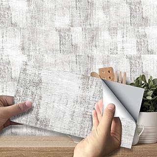 HyFanStr 3D Fliesenaufkleber Küche, Grau Holzeffekt Selbstklebende Fliesensticker Bad Fliesendekor, Peel and Stick Wandfliesen Backsplash Wasserdicht Wandaufkleber 30.5x30.5cm 10 Blatt
