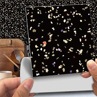 Alwayspon Wandfliesen-Aufkleber für abziehen und aufkleben, selbstklebende Spritzschutz, Fliesenaufkleber für Küche, Badezimmer, Wanddekoration, 25 Stück, schwarz Terrazzo Fliesenaufkleber