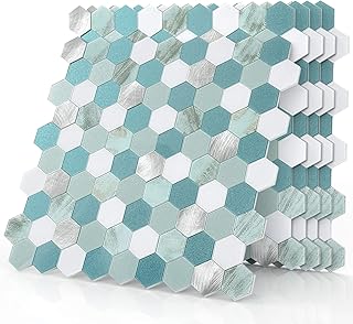 HyFanStr 10 Blatt Abziehen und Aufkleben Wandfliesen Backsplash für Küche, 3D selbstklebend Fliesenaufkleber für Badezimmer Wandaufkleber Bad 27x25.4cm