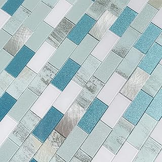 BeNice Fliesenaufkleber, Mosaikfliesen, zusammensteckbar, für Küche, Bthroom, DIY-Wandfliesen, wasserdicht, 5 Blatt, blaue Mischung