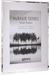 Kenro Avenue Bilderrahmen Silber, Fotorahmen 13x18cm, Bilderrahmen mit Weißem Passepartout, AVE1318S