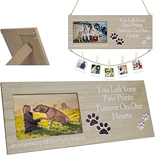 1WANYUE Bilderrahmen für Haustiere, 10.2 x 15.2 cm, Hundemotiv mit Pfotenabdrücken, Bilderrahmen für Tierverlust, Katzen- und Hunde-Gedenkgeschenke, personalisierter Bilderrahmen (340 x 140 mm)